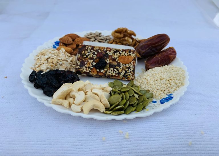 একসাথে ১১ টি উপাদান-খেজুর,কাজু বাদাম,কাঠ বাদাম,আখরোট,কুমড়া ও সূর্যমুখী বীজ,সাদা তীল,ওটস,মধুর ও ব্লাক কিসমিসের দারুন কম্বিনেশন।